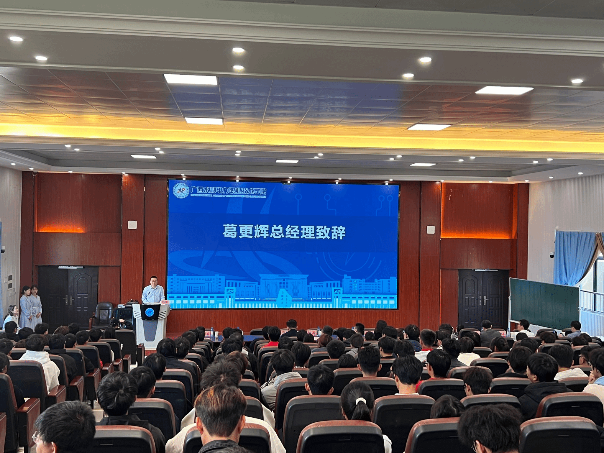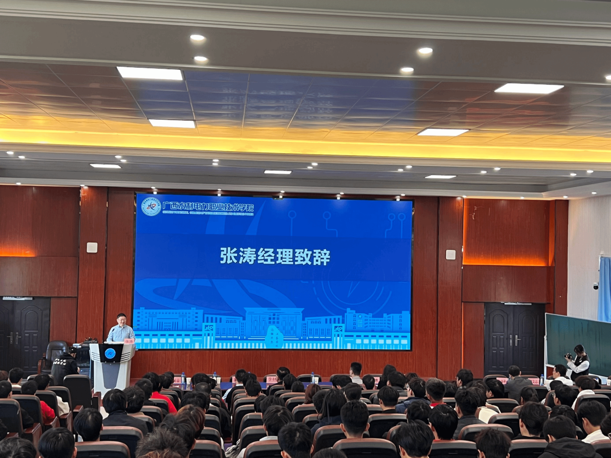 张涛在发言中对学校表达了感激之情,指出学校向华为输送了众多优秀人才,目前在职人数已超过750人,其中不乏企业骨干。他希望同学们在学校努力学习专业知识,并通过实际操作将知识转化为技能和能力,展现具有工匠精神的职业品质。