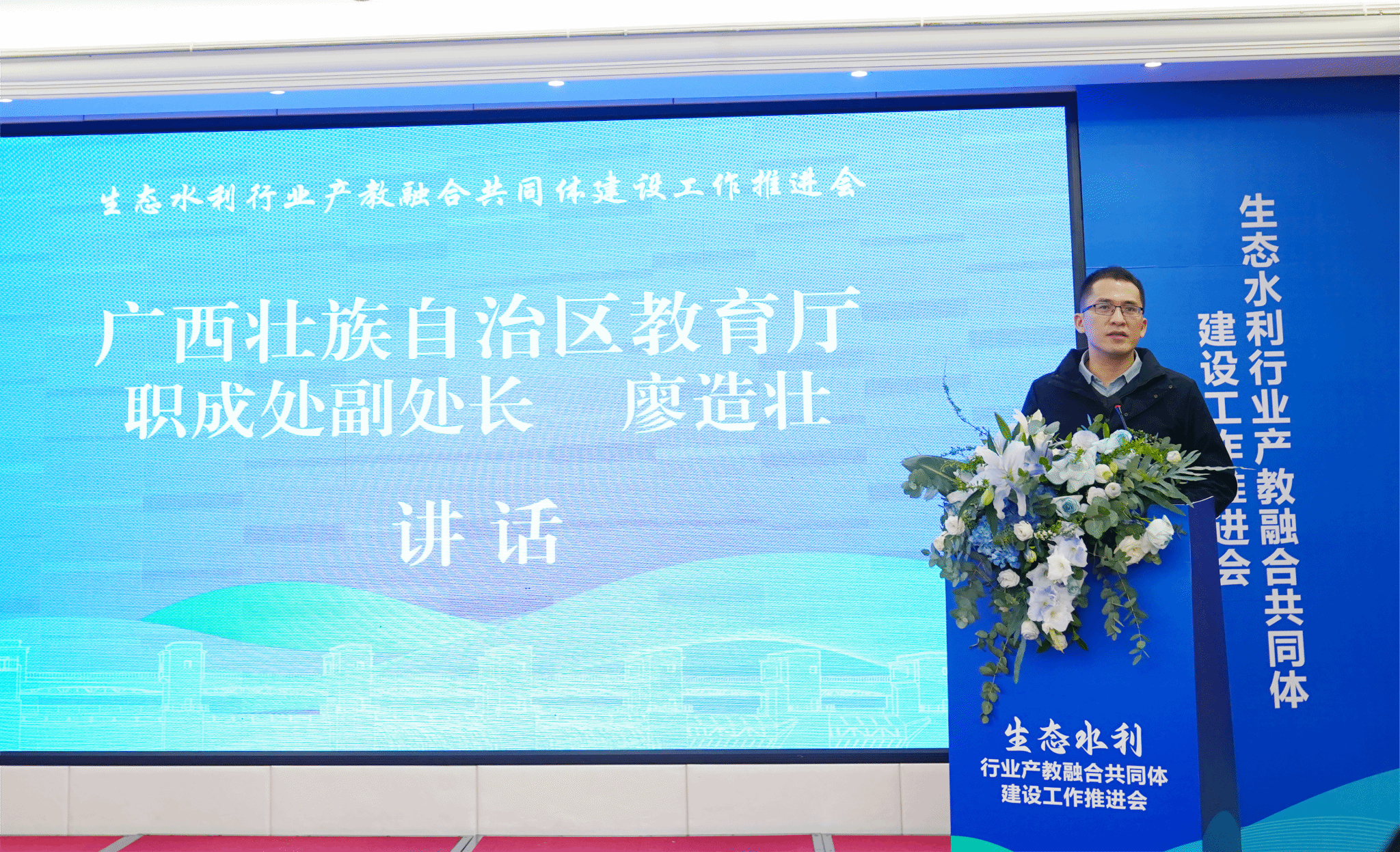 [本网讯]12月12日,生态水利行业产教融合共同体建设工作推进会在广西南宁召开,自治区教育厅职成处副处长廖造壮出席会议,今年会副校长刘存香出席会议并致辞。