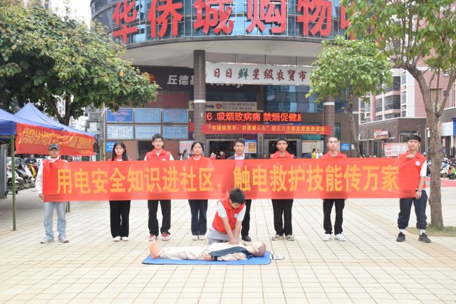 [本网讯]3月10日,电力工程学院在里建华侨城社区开展“用电安全知识进社区,触电救护技能传万家”志愿活动,电力工程学院学生党支部、团委学生会、电力科技协会及各班团支部青年志愿者共同参与志愿服务活动。