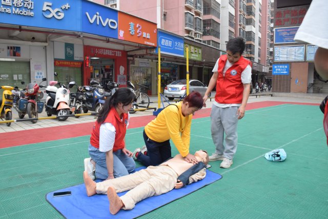 在老师的组织安排下,学生党员、团学干部、青年志愿者在到达现场后迅速开展本次活动,志愿者们从生活中如何安全用电、触电后如何开展应急救护等方面,用通俗易懂的语言,深入浅出地向社区居民们进行了详细的讲解,并现场演示了触电人工呼吸与心肺复苏的操作步骤和方法。现场气氛热烈,居民们听得十分认真,踊跃参与急救实操演练,本次活动真正让居民们了解到触电人工急救的重要性并学会急救技能。