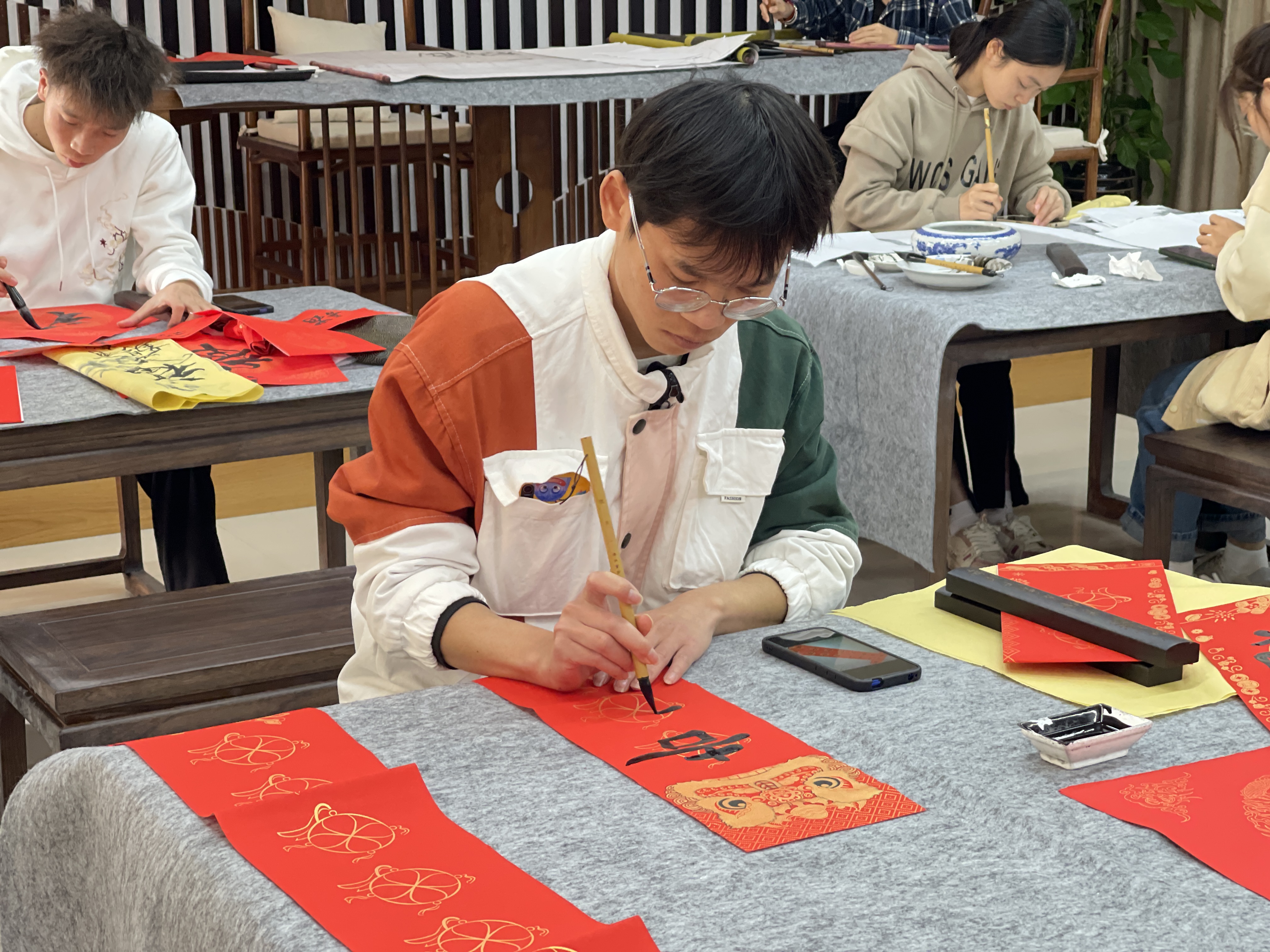 学生练习书法