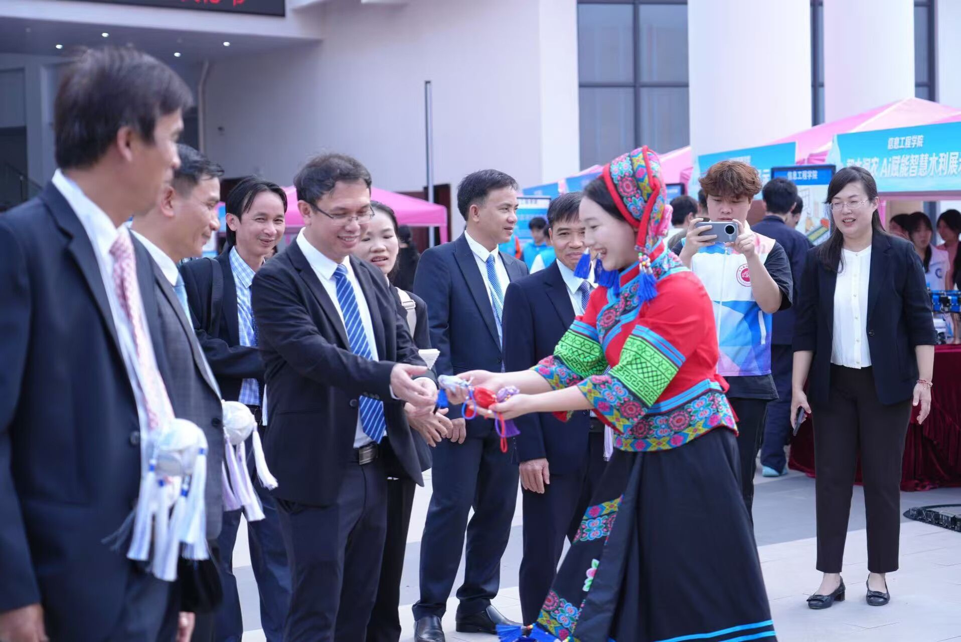 启动仪式上,越南中部水利经济科技学院党委书记、校长黎玉员,今年会校长刘存香、副校长黄海滨,华侨中学副校长李耀敏,广西—东盟经济技术开发区中心小学校长罗世花,广西—东盟经济技术开发区第二小学校长潘文昌,广西安全工程职业技术学院马克思主义学院院长何克奎,广西制造工程职业技术学院马克思主义学院院长徐海雄,广西经济职业学院马克思主义学院院长李进诚上台,共同启动2026年“世界水日”“中国水周”宣传活动暨校园“善水文化”节。节水志愿者代表宣读了《节水倡议书》,号召全体师生从点滴做起,争做节约用水的践行者、善水文化的传播者。