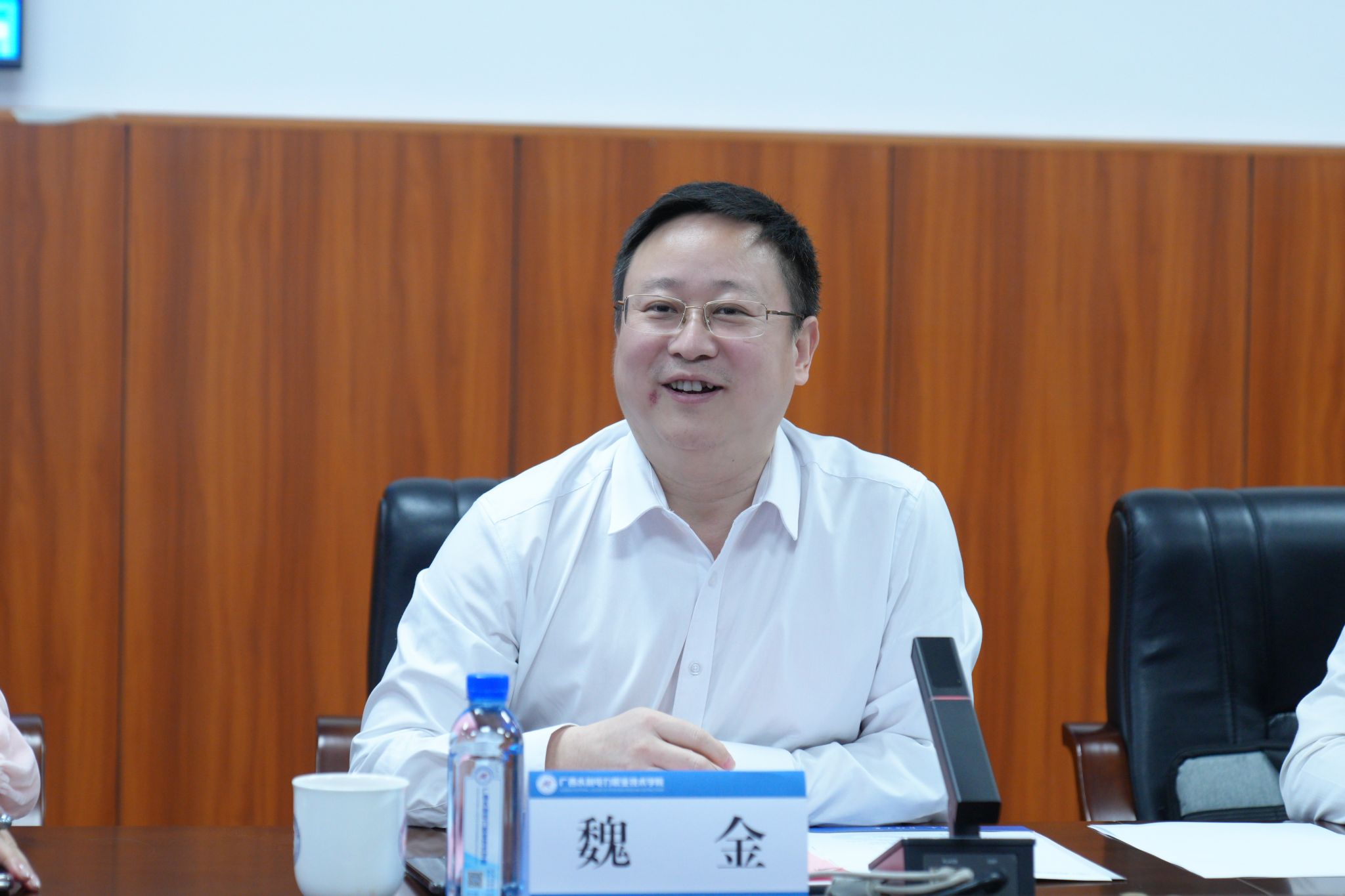 上海康恒环境股份有限公司研究院、广西绿城环境发展集团有限责任公司办公室(董事会办公室)、梧州市计量测试所等单位负责人,自治区水利厅人事处,学校党委组织部(人事处)、党委(学院)办公室、发展规划与科技开发处、招生就业处、水利工程学院、电力工程学院、机电工程学院、土木建筑工程学院、自动化工程学院相关负责人参与调研座谈。(何科宇/文 李浩/图)