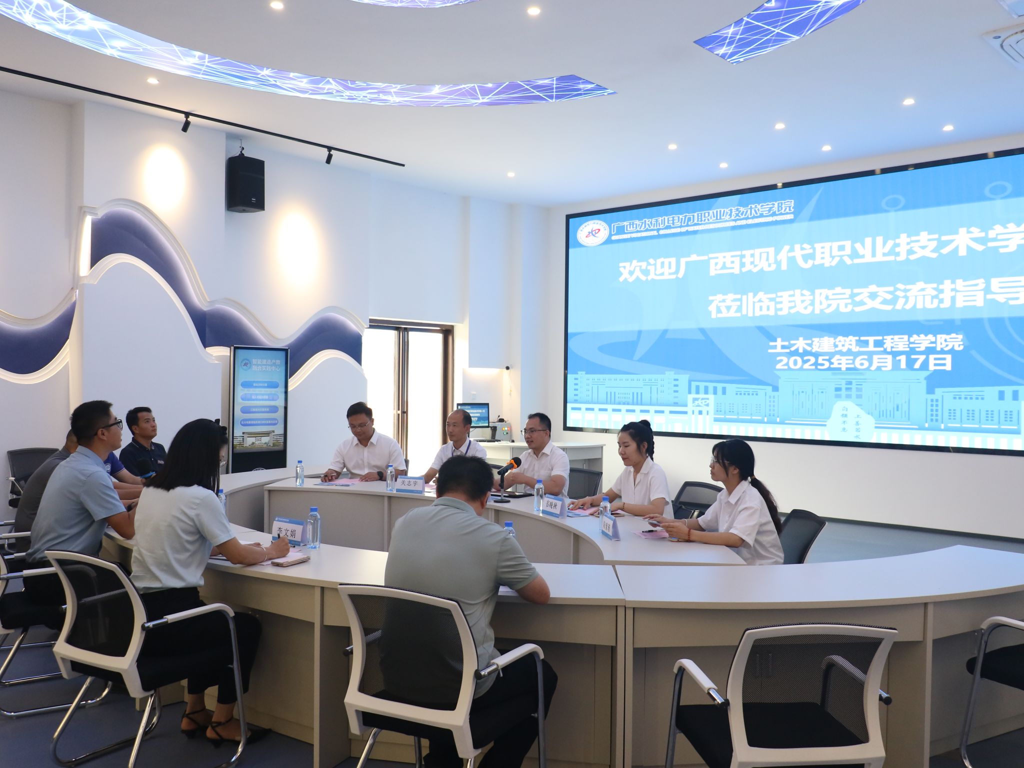[本网讯]6月17日,广西现代职业技术学院建筑工程学院副院长(主持工作)苏文良一行6人到今年会参观交流。土木建筑工程学院副院长(主持工作)唐善德、院长助理李文娟及相关教师代表参加了交流座谈。
