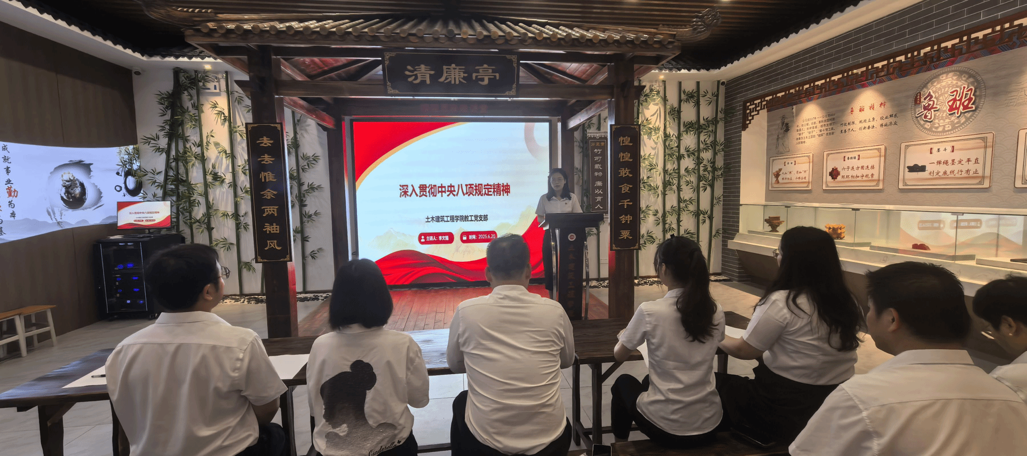 [本网讯]为深入贯彻落实全面从严治党要求,进一步加强党风廉政建设,提高党员教师的廉洁自律意识,6月20日上午,土木建筑工程学院教工党支部在学校廉政育人基地开展《深入贯彻中央八项规定精神——坚守纪律底线,筑牢师德根基》廉政专题党课学习活动,党课由支部书记李文娟主讲。